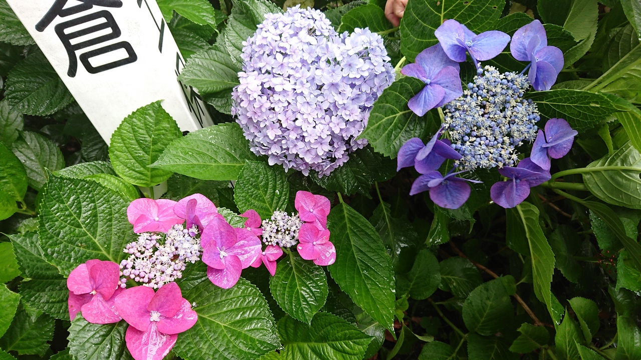 珍しい八丈千鳥という紫陽花がみられます。紫陽花が江ノ電と紫陽花のコラボ写真がとれる有名な場所です。紫陽花の花が大きく、珍しい色のものもあります。