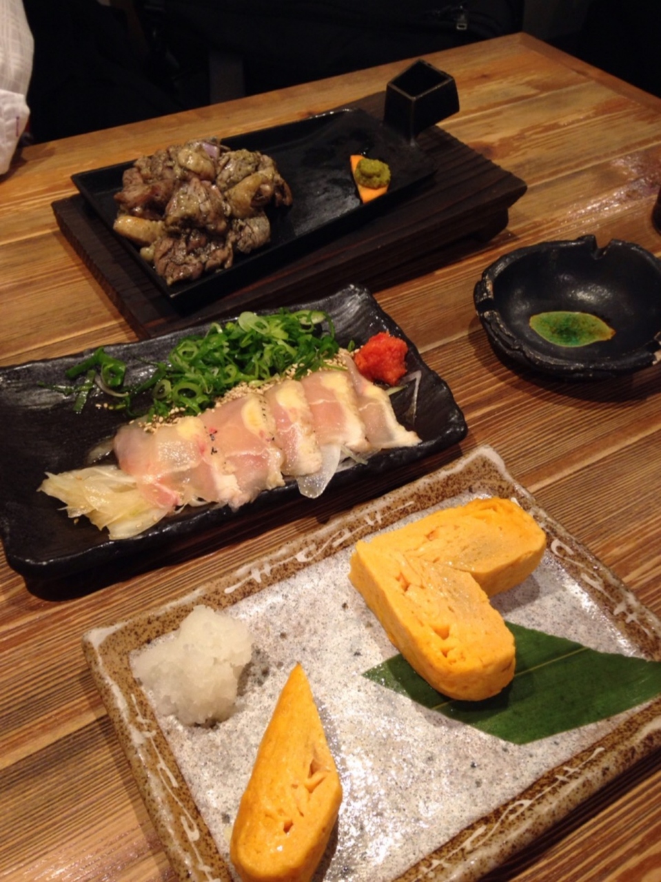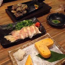 宮崎の地鶏のお店のようなのでオススメのセットと卵焼き、おびの天ぷら、お魚ですがきびなごの唐揚げ、チキン南蛮を注文。どれも食材が美味しくてチキン南蛮にデフォルトでかかっているタルタルソースが余計だと感じる程でした。