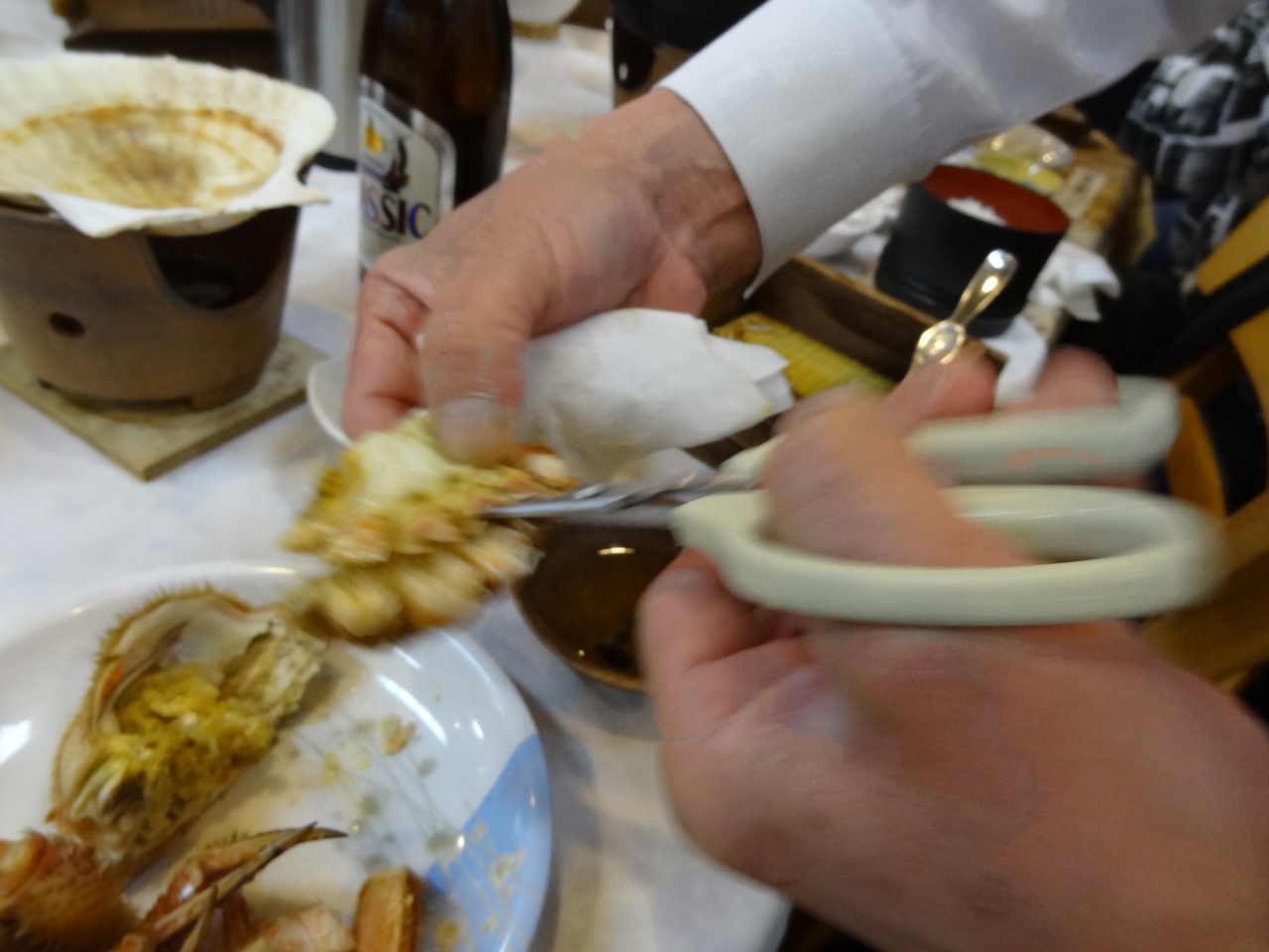 - 男性店員が親切に毛ガニを食べやすいように剥いてくれました