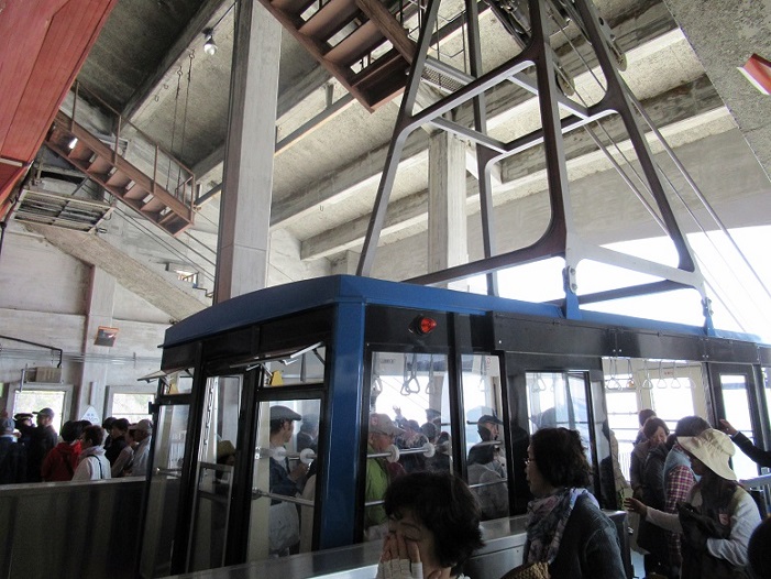 まずは関電トロリーバス乗車し「黒部ダム」へそして黒部ケーブルカーで「黒部平」に到着です。そして三つ目の乗り物であるこの「立山ロープウェイ」に乗って大観峰へ行きます。標高は1828mから一気に約500m上昇し大観峰では2316mになります。