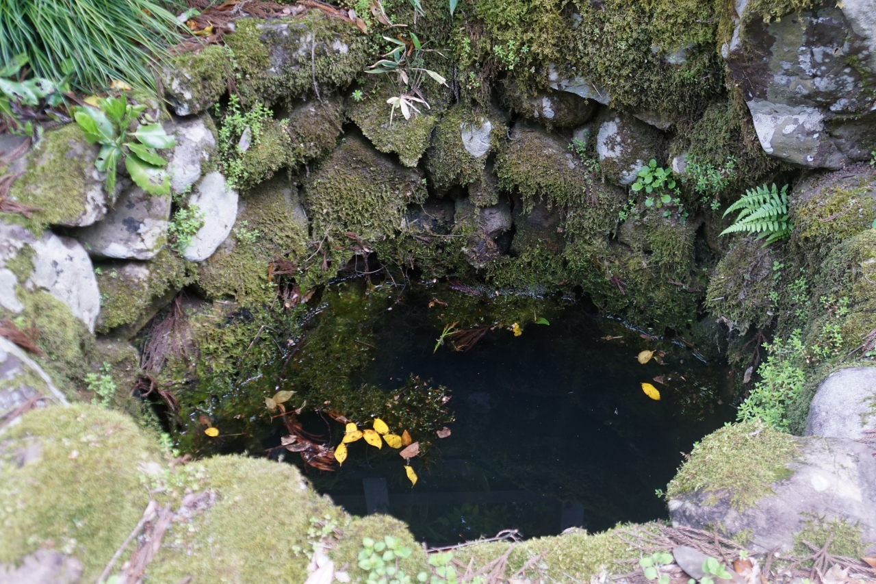 これは、瑞泉寺の起こりに関係していて。近くに住んでいた綽如上人が京都へ向かう途中、乗っていた馬が足で地面をかいたところから清水が湧きでる。そのことに感じて、そこに瑞泉寺を建てたというのです。石垣で囲った井戸の中には今でもしっかり水が湧いています。