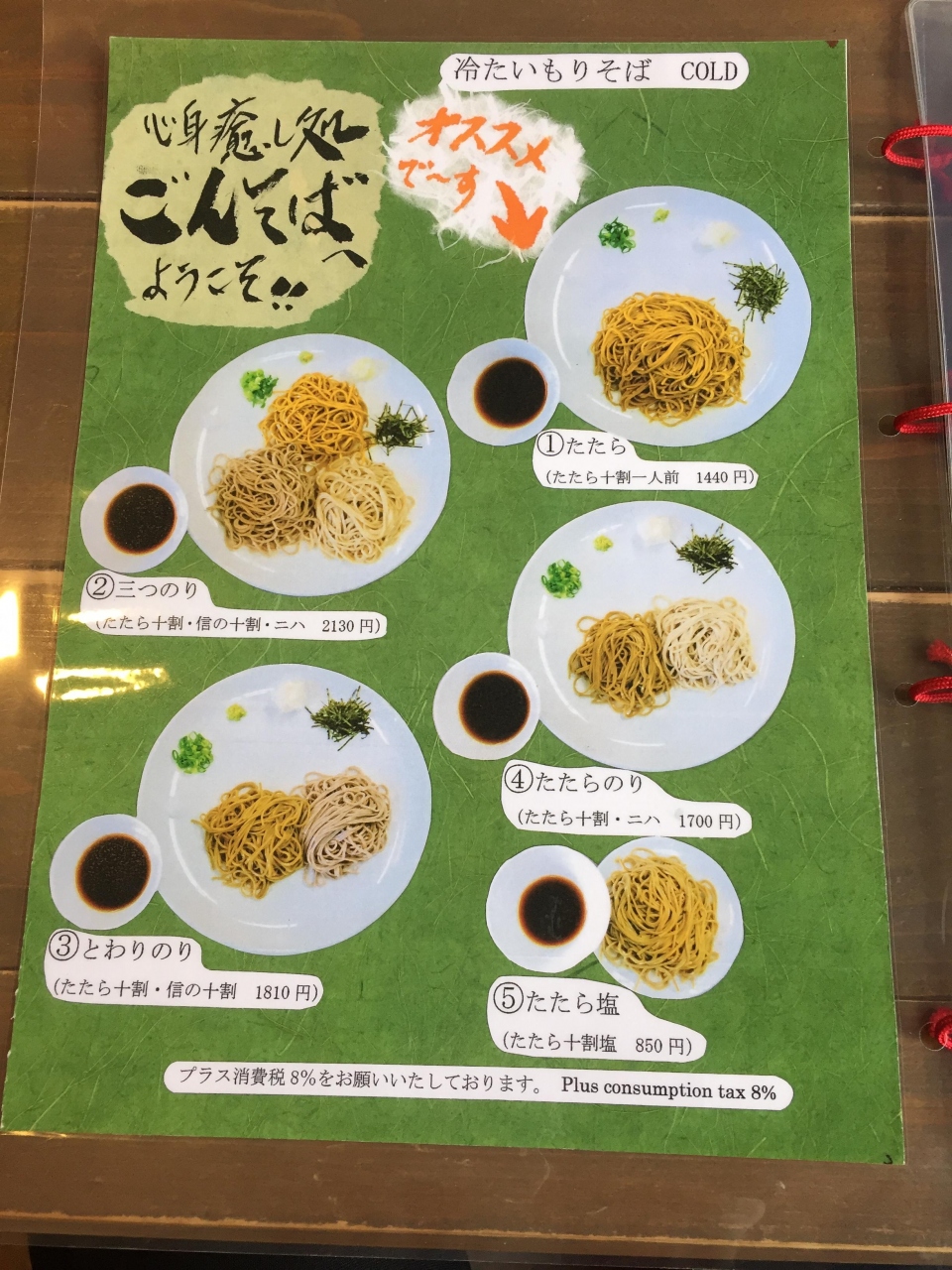 おススメはこちらです、と1440円のたたら蕎麦というものをすすめてくださったので、私としてはちょっとお高いけどチャレンジ!と思いそれに。