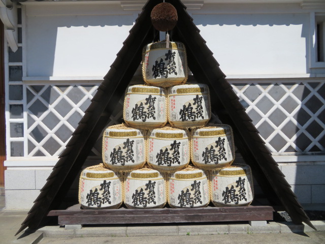 酒蔵が多くある西条で最も規模が大きいのが賀茂鶴酒造、江戸初期からの醸造業で酒造業は明治6年から、御茶屋(本陣)跡横から広い敷地に入りました、趣がある白壁の酒蔵群があり、売店では試飲や酒造りの工程をビデオで見ることが出来ます、酒樽を利用した椅子が印象的でした、賀茂鶴は各種品評会で賞を数多くもらっているようです。