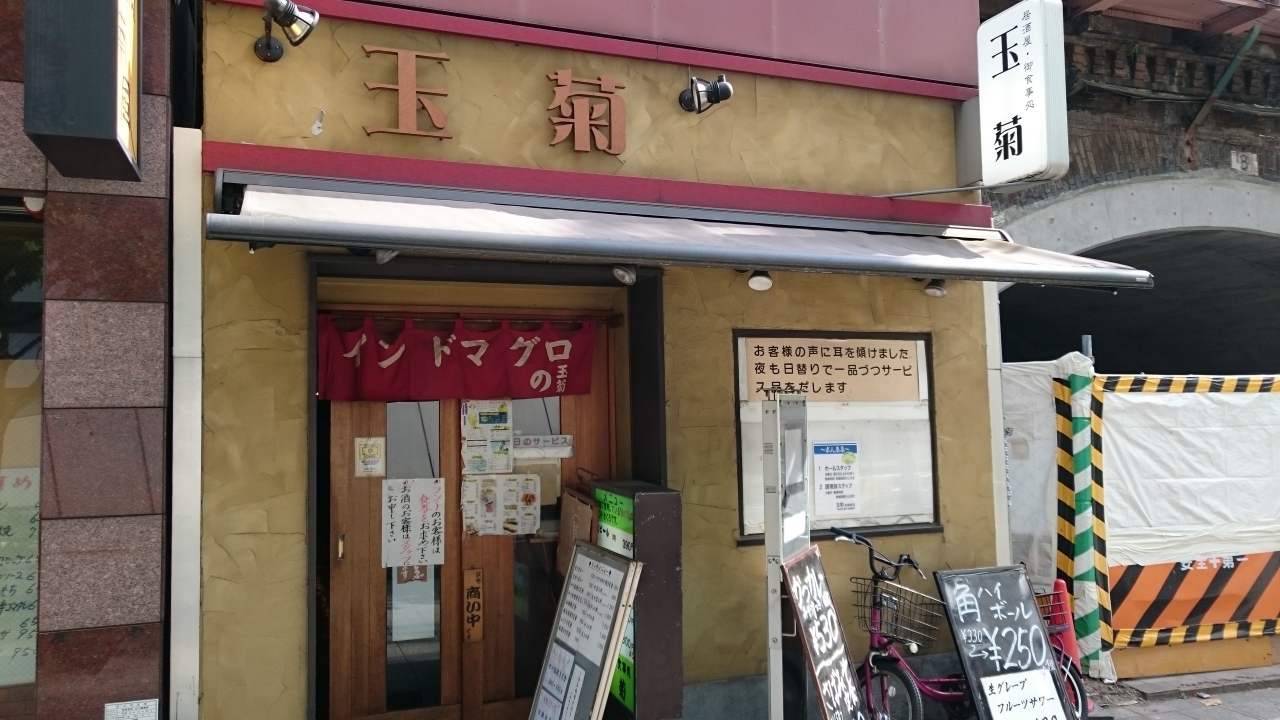 有楽町カード下のマグロ料理のお店、玉菊です。お昼時間帯にランチで入りました。お店はウナギの寝床の様な縦長のお店です。テーブル席が多数。ちょっと時間外れていたのでお客様は少なかったです。ランチ時間帯は入り口の券売機で食券を購入するシステムです。ランチメニューのカツカレーを注文しました。味噌汁付きです。なかなか美味しい。カツはサクサクでした。今度は夜に行ってみたいです。