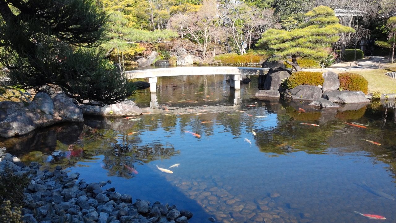 姫路城との共通券が価値があります。公園は白い狭い橋と大きな踏み台によってよくつながています。魚は清潔で透明な水の中で平和に泳ぎます。冬の間はまだ半分の緑の木が残っています。竹は公園に特別な植物と思います。