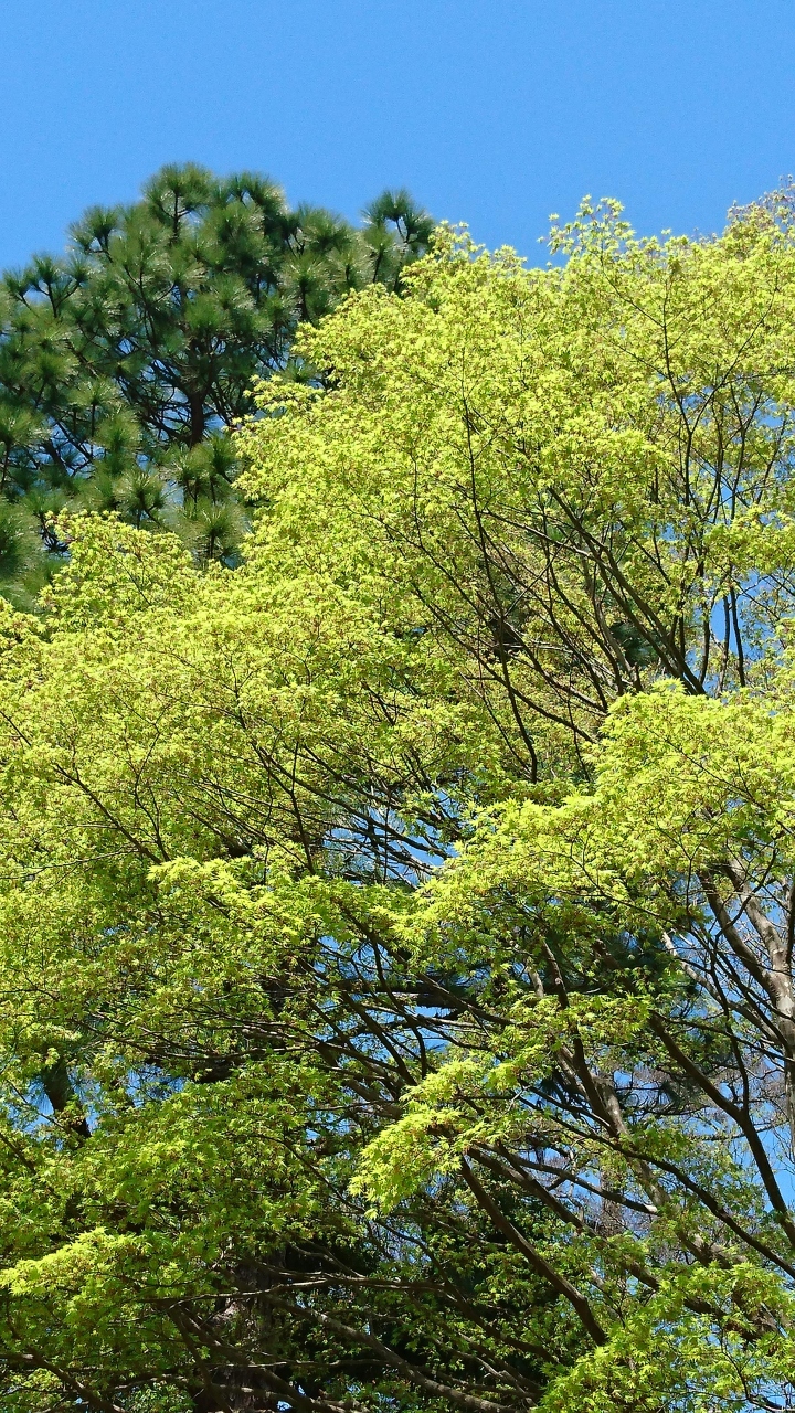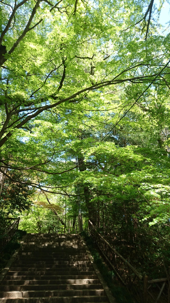 若葉を枝いっぱいに広げたモミジや桜が出迎えてくれ、すがすがしい気分に。