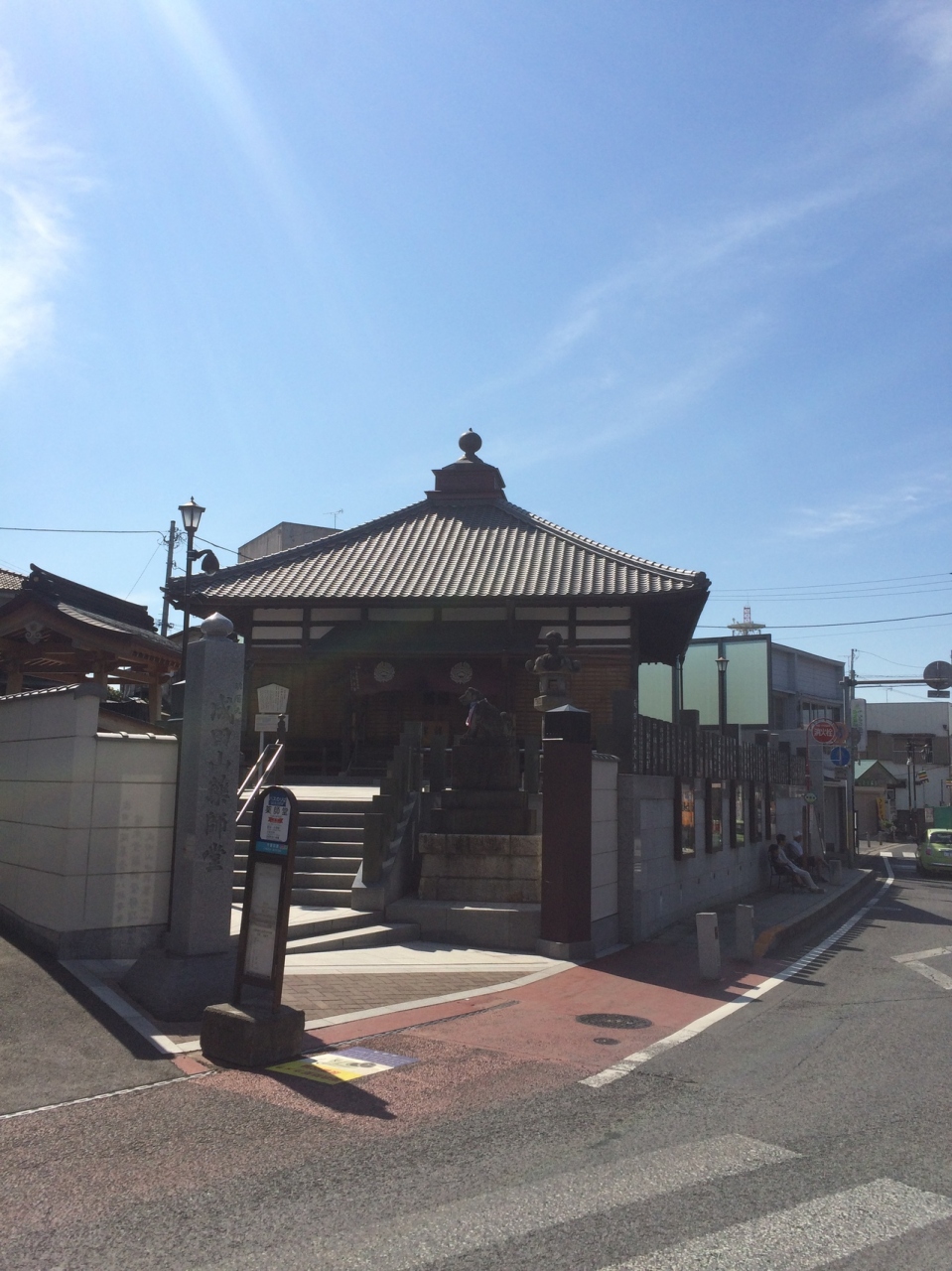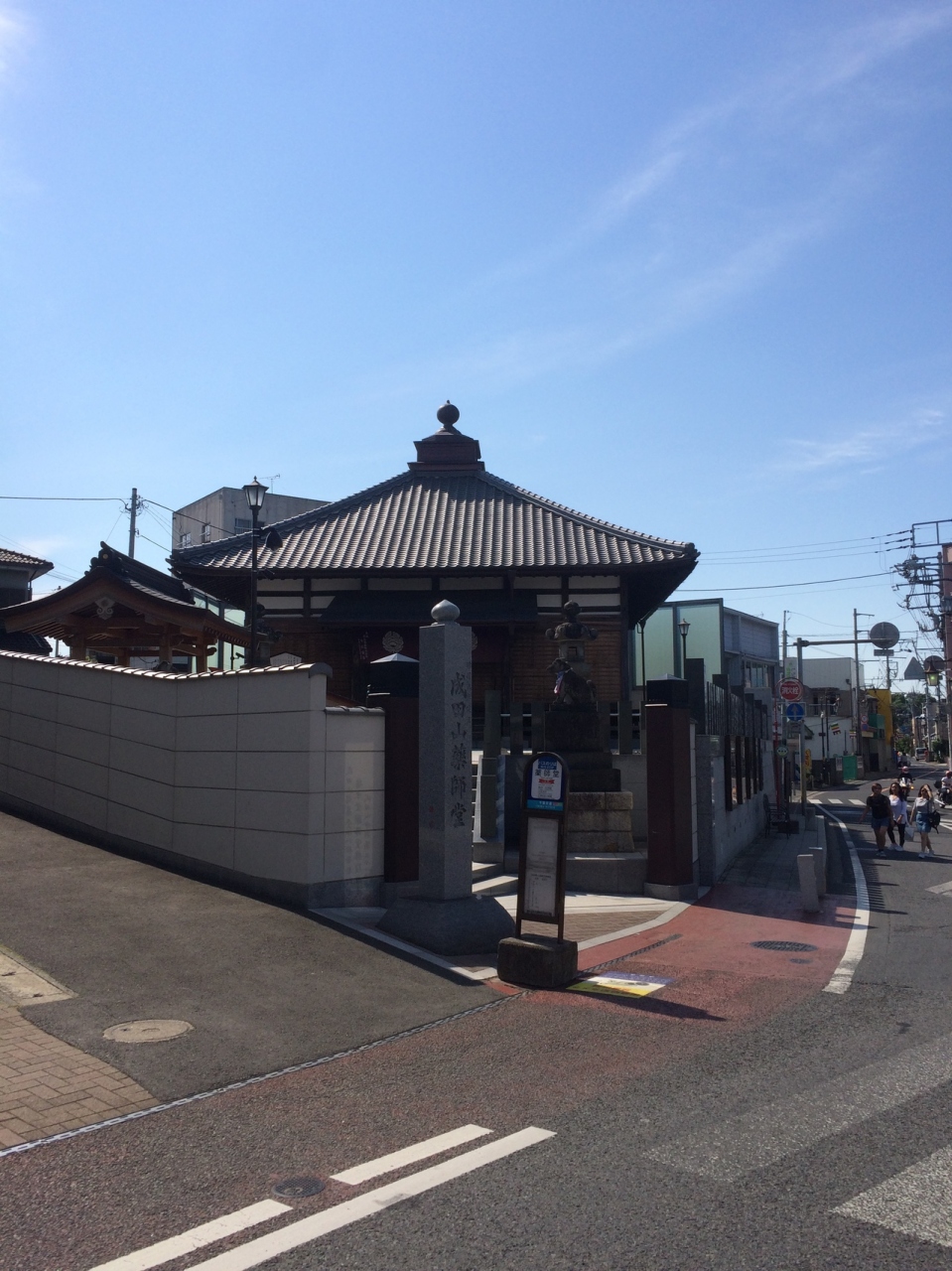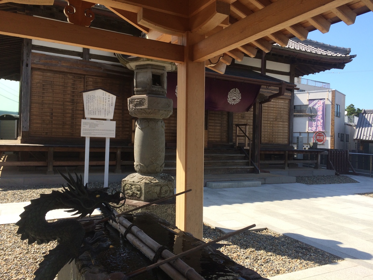 成田山参道沿いの道をの分岐にありバス停も目の前にあります。狭い境内で、お清めする水場は龍の形をした口から水が出ていました。堂の前には灯籠があり薬師如来があり祀られていて、、案内板には成田山旧本堂と書かれていました。
