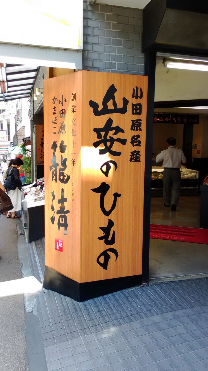 箱根湯本駅前の商店街を歩いていて、見つけました。干物が有名な店です。店のすぐ脇で、自分で干物を焼いて試食ができます。味をみてから購入できるので、安心てす。アジの開きが一番人気のようです。金目鯛はやはり高価です。