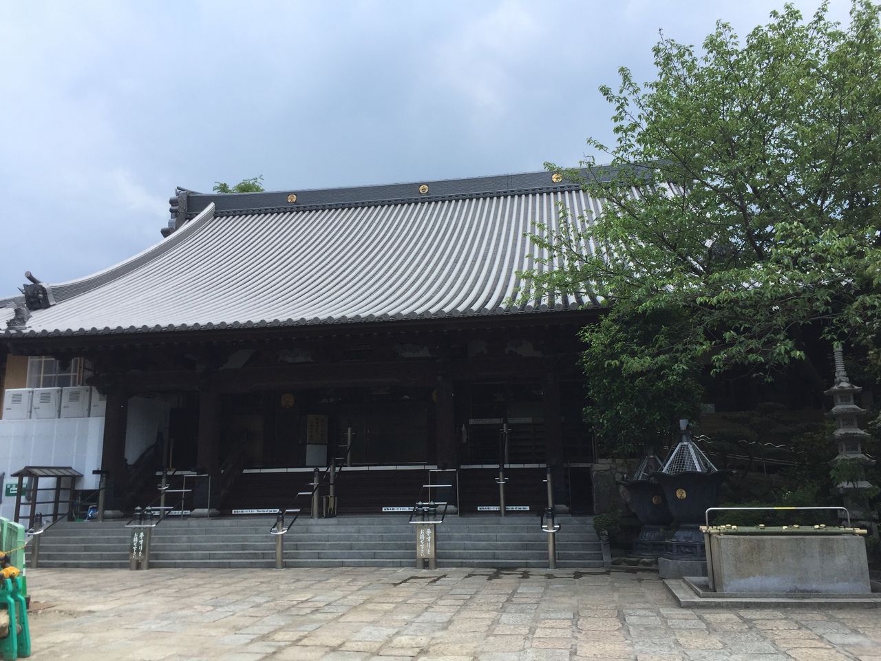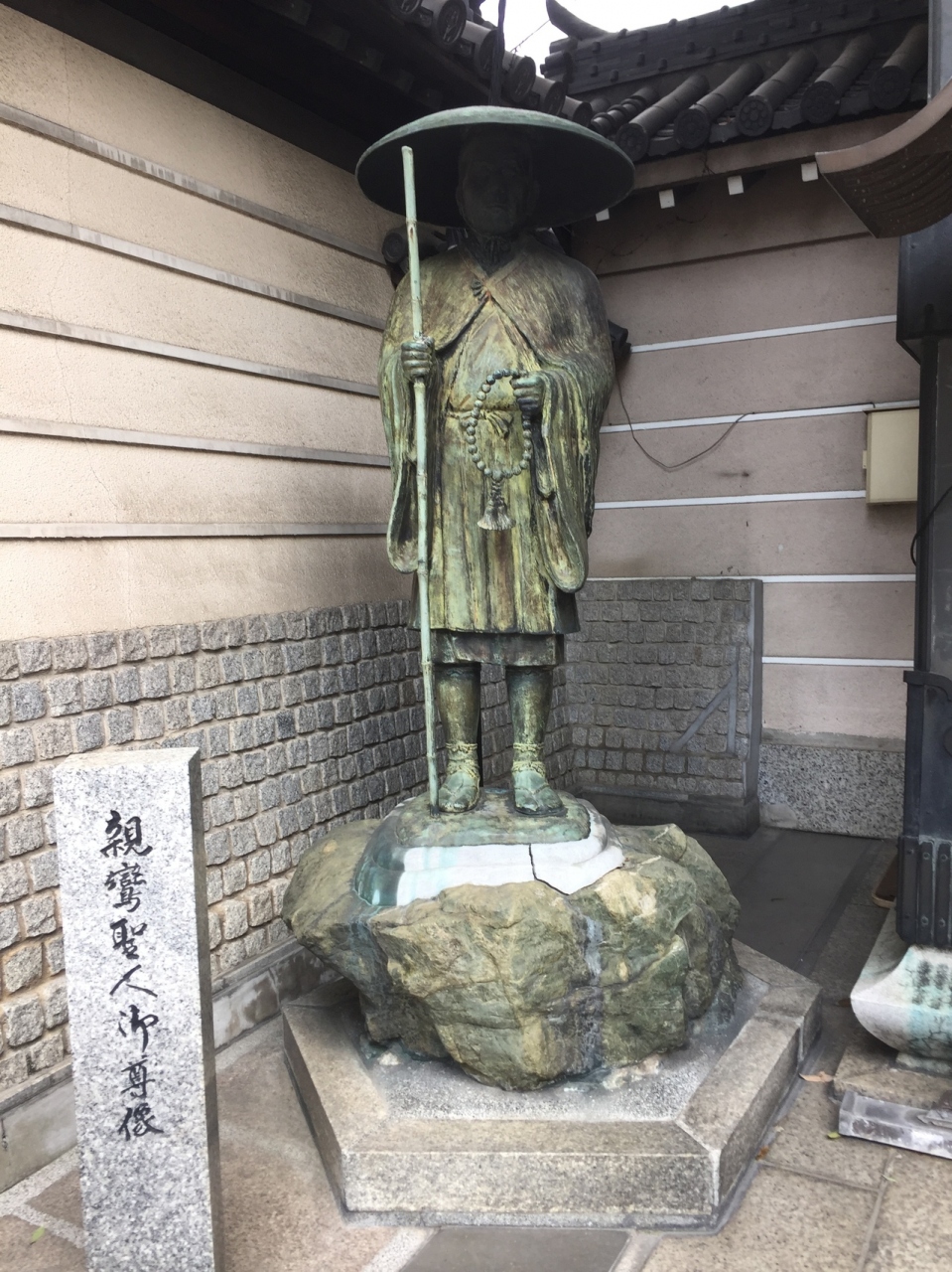 櫛田神社を出たら、大通りの方に立派な山門が見えたので、寄って見ました。山門の脇にはひっそりと親鸞聖人聖像が鎮座しています。境内は大変広くて、大都市の中のオアシスのような場所でした。また、本堂も大きく見応えがありました。