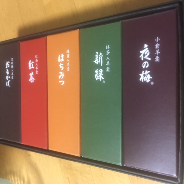 写真は、小型羊羹です。いろいろな種類を楽しめるので、最近はこれが定番です。甘さの中に上品な香りが漂う逸品です。