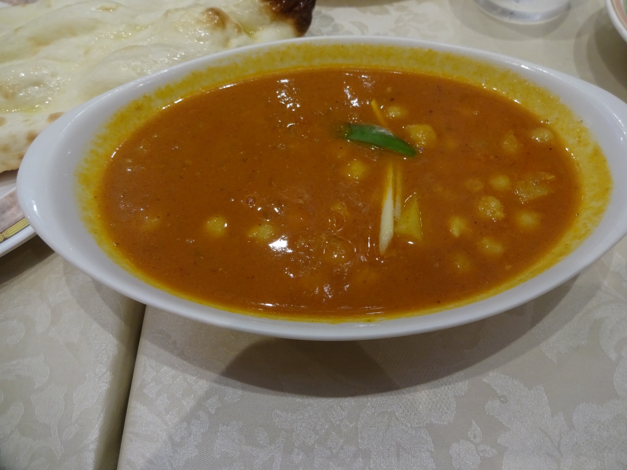 サラダ、ナン(またはご飯)カレーは⒌種類の中から一つ(私は豆カレー)飲み物(私はラッシー)デザートで1000円。
