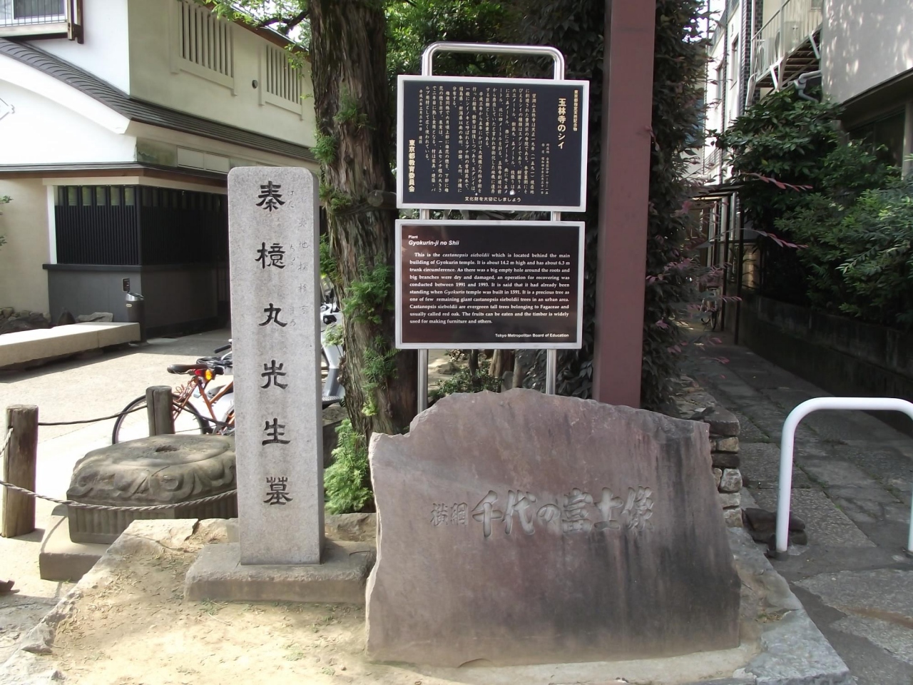 - 地下鉄・根津駅出入口1から言問通りを北東 (谷中霊園) 方向に歩いて3分位の左手にある玉林寺本堂の右手前です