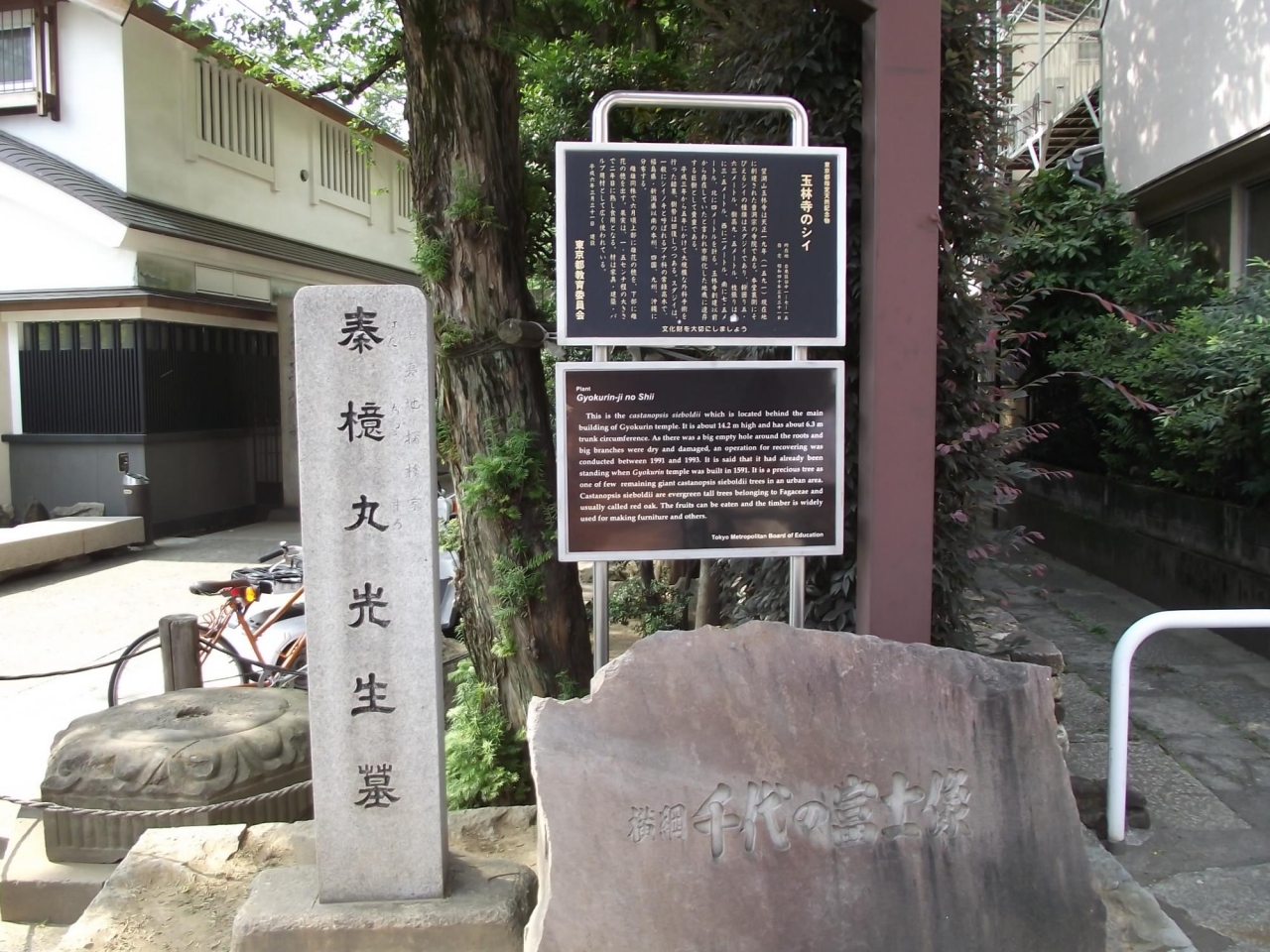 - 地下鉄・根津駅出入口1から言問通りを北東 (谷中霊園) 方向に歩いて3分位の左手にある玉林寺山門右手前に石柱があります