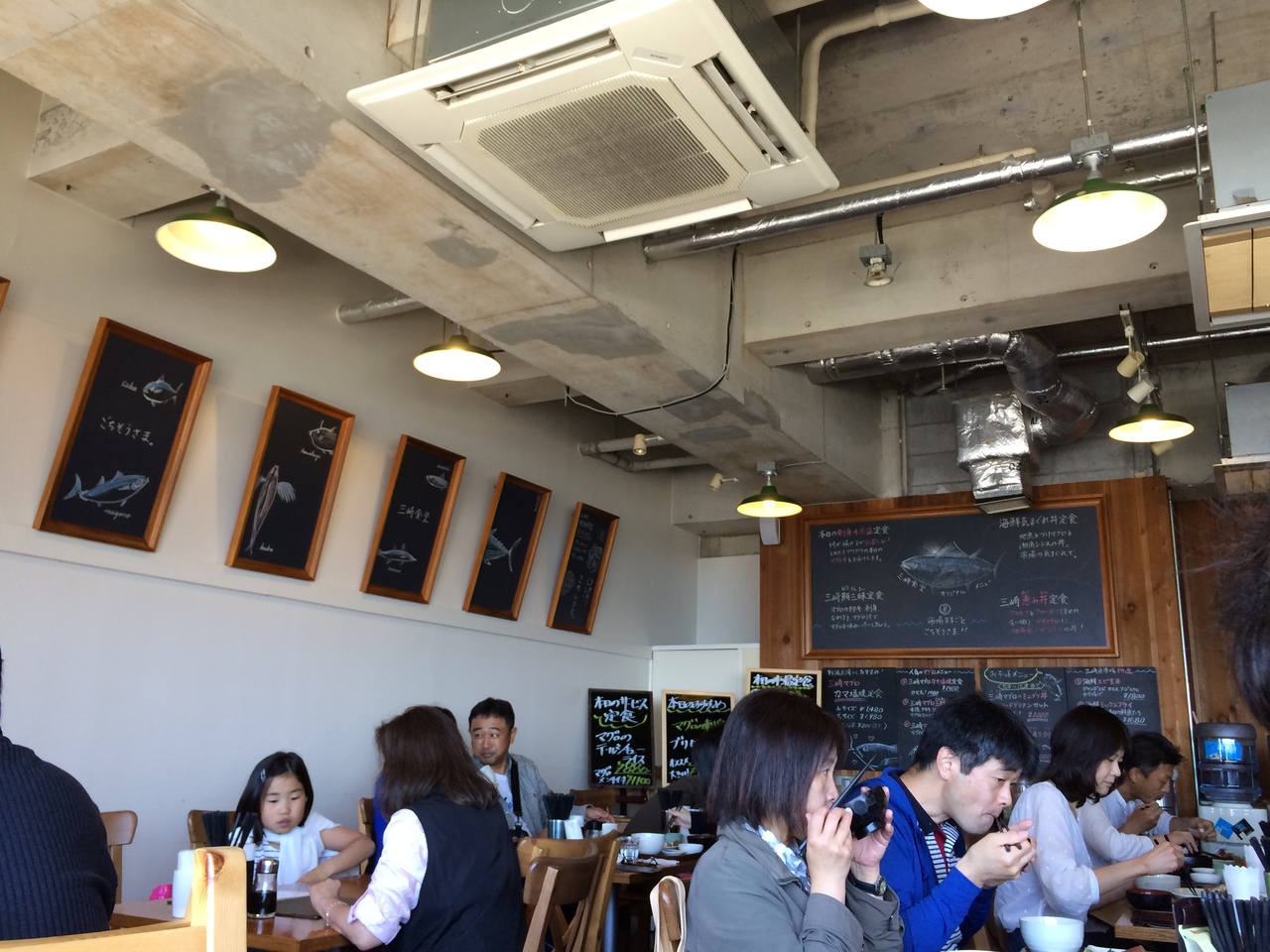 11時前に到着、車は、漁協脇の空いている箇所に駐車しました。列はそんなに長く無かったのですが、中々進まず案内されたのは12時すぎ、その間、魚市場などを並ぶのを交代してみたりして時間を潰しました。