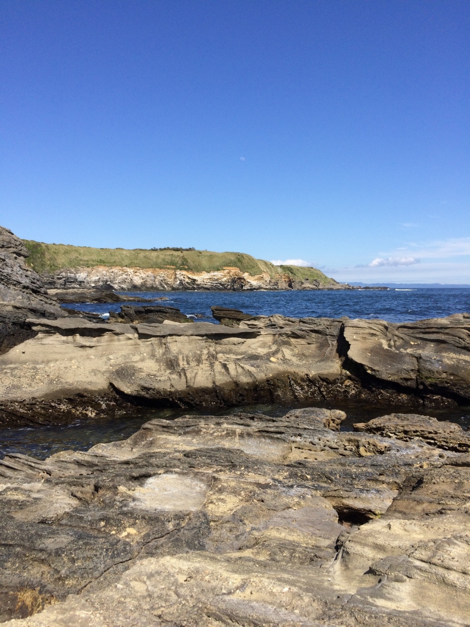灯台を見学、磯遊びをしながら、ひたすら地層の海岸線をウォーキング。意外と距離があったので、県立公園には辿りつけませんでしたが、いい運動になりました。
