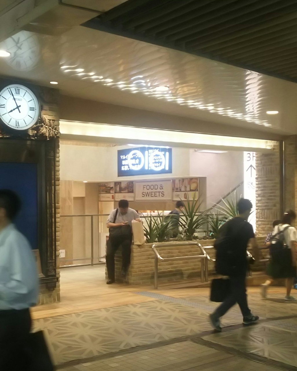 駅改札のフロア(二階)は女性用小物の店舗もありますが、最近はイートインコーナーを備えた軽食の店舗が増えています。