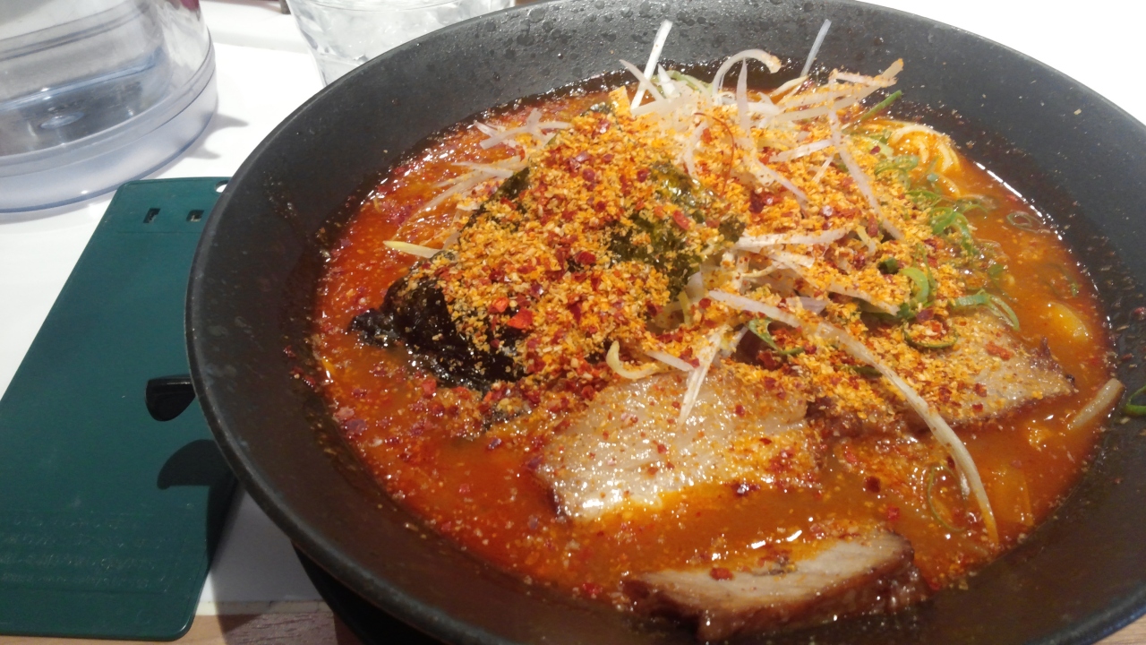 簡単に有名な小豆島ラーメンにして、深い赤い色のスープでも、実に普通の辛い味と思います。そばテクスチャ、肉の味と量もいい。価格は相当合理です。そばは替え玉は無料です。何回も近くの客から替え玉の請求を聞こえます。