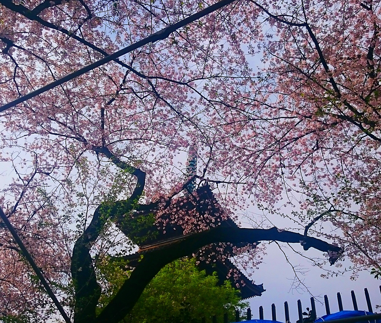 花見のために上野公園を散策していたら、五重塔を発見しました。