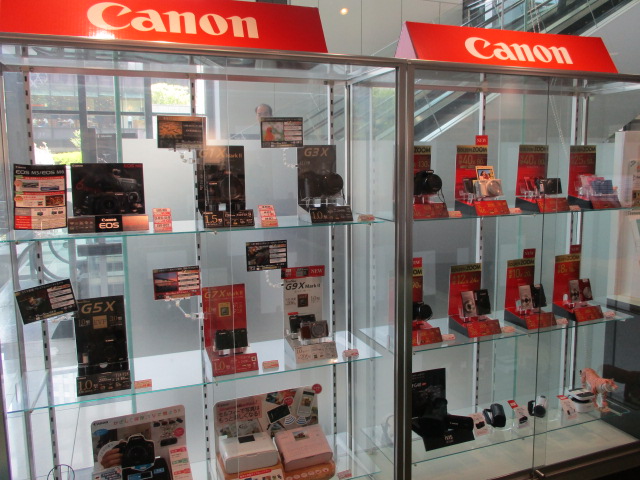 新宿駅西口から西口中央通り地下通路を都庁方面に進むと地下3階地上55階建ての超高層ビルの新宿三井ビル1階にキャノンサービスセンター新宿 (コンシェルジュルーム) に歩いて5分ぐらいで着きます。キャノン製品、交換レンズが数多く展示されており、広い室内でゆっくり実機を見ながら専門知識豊富な人と対面会話はとても勉強になります。特に高価な一眼レフカメラ購入やメンテの際にお奨めします。