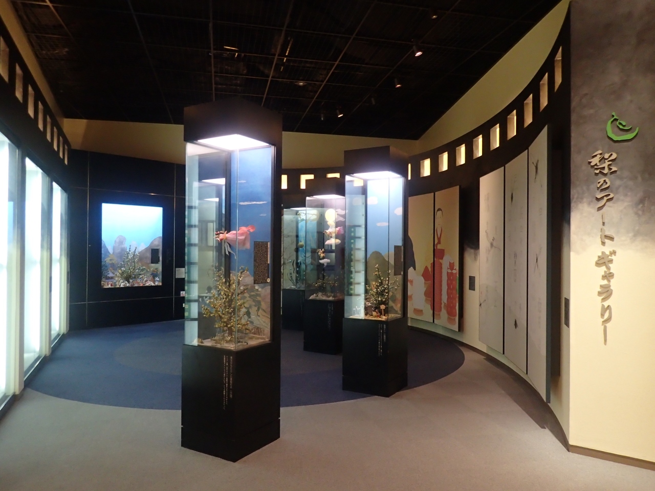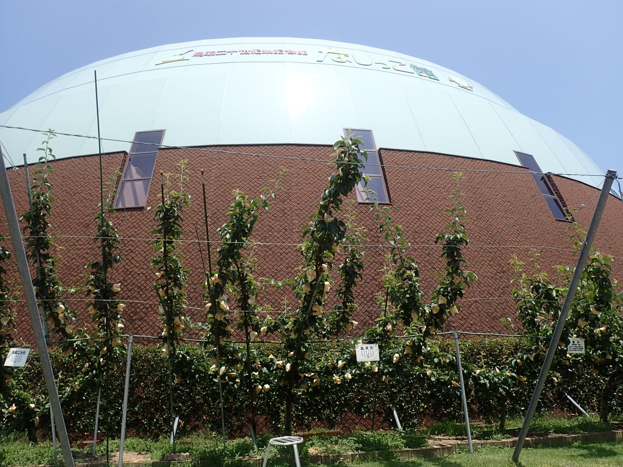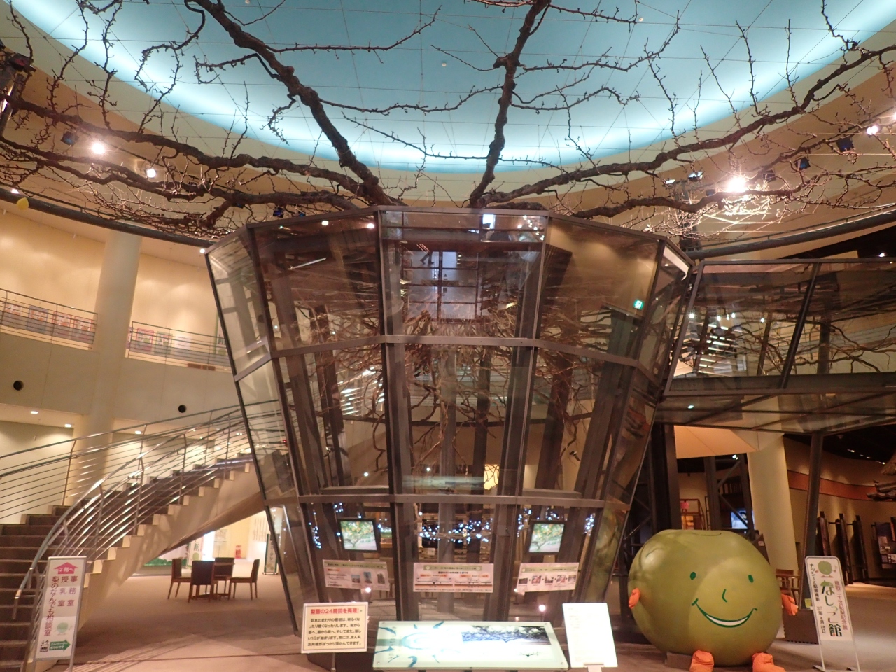 入り口を入ると、親子3代で作り上げたという梨の巨木がオブジェとなってお出迎え(2階から見ると素晴らしい)、梨をテーマに、ここまでのものを作り上げたところに、鳥取県の本気を見た感が(笑)
