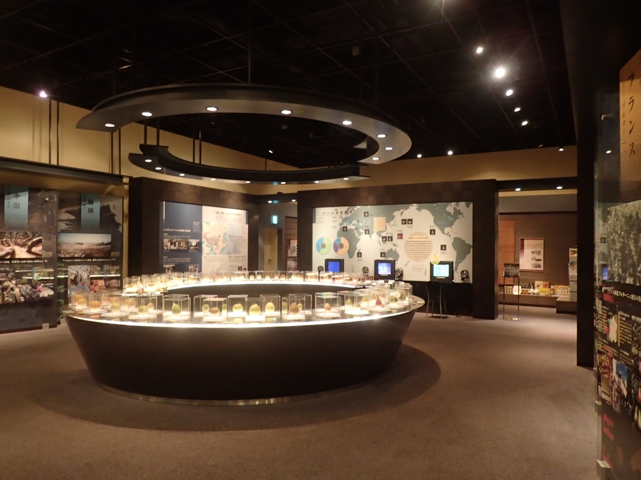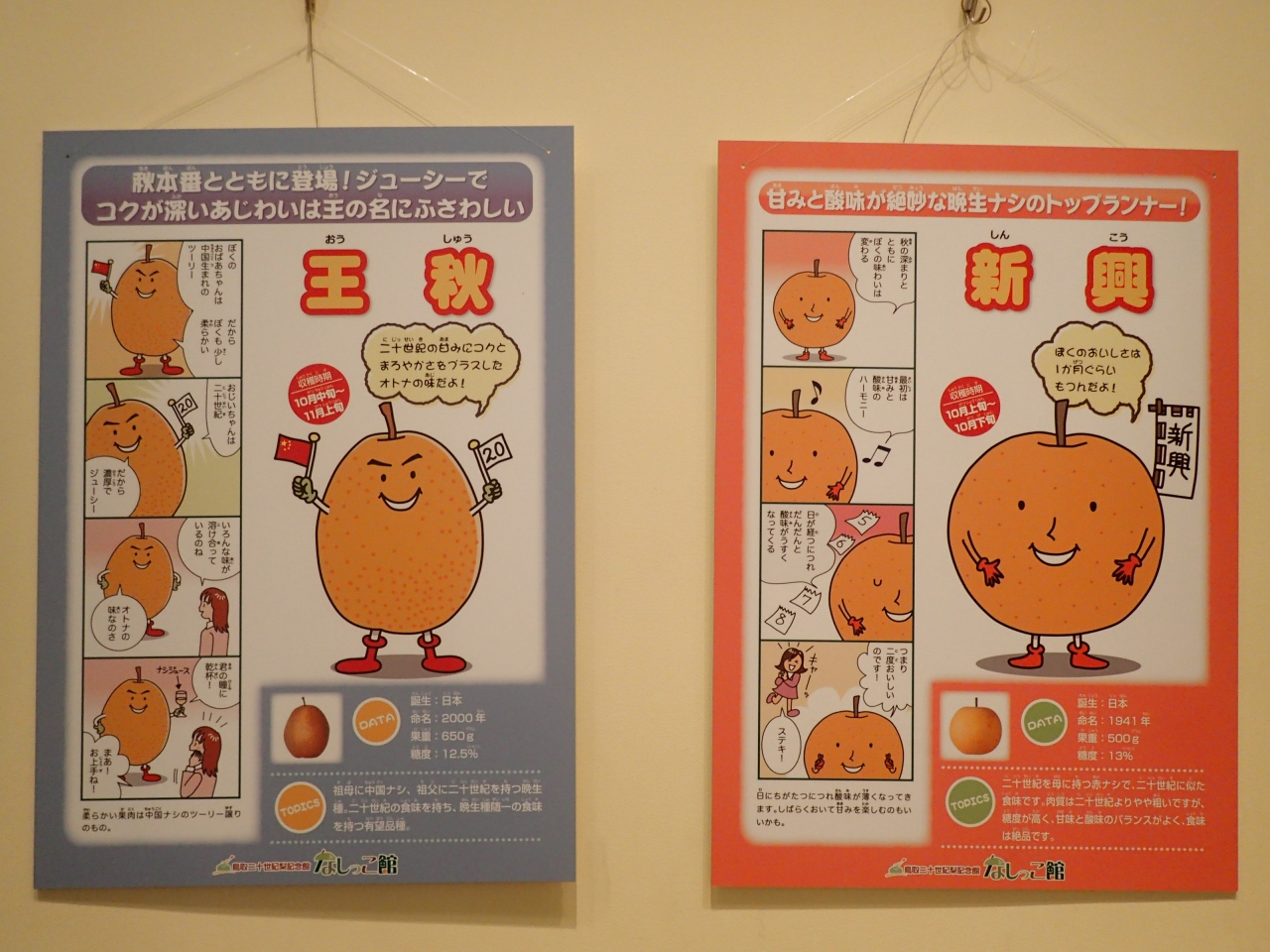 ところが今回訪れてみてびっくり、単に梨の栽培方法等の紹介だけかと思いきや、鳥取における梨栽培の変遷、梨農家さんの紹介、梨の食べ比べ、と言った定番的なものから、世界の梨と栽培方法の違い、梨が登場する各地の民話や日本文学、マンガで紹介する種類ごとの梨の特徴、外には梨ガーデン…等々と、まさに思いつく限り多角的に梨を取り上げていて、しかも視覚&聴覚をフルに使って見学できるようになっている。
