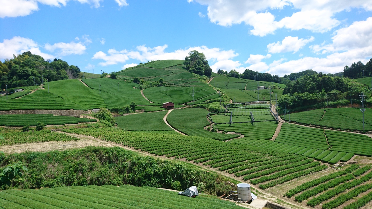 なぜだか茶畑を見ると心が落ち着きます。和束の茶畑は周囲に何もないところにありますが、ほっと一息つけました。あちこちで見かける写真と全く同じ風景が広がっています。心地よい風とお茶の葉の新緑が目に染みます。