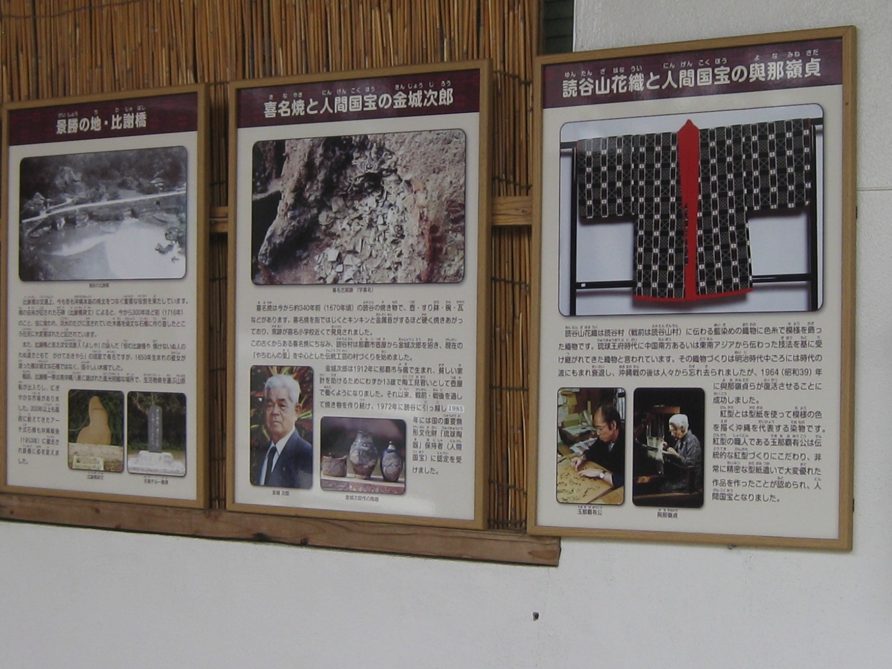 沖縄中部読谷村座喜味城址の麓にある沖縄で最初に建てられた村立歴史民俗資料館で美術館も併設されています。座喜味城址の入口右側にあるが目立たず通り過ぎることありそうです、残念ながら今はリニューアルの為休館中(H28/4/1~H30/3/31)、玄関直ぐの所に読谷の焼物や織布などの説明板が架かっていますが、中には入れません。読谷の歴史や遺跡などに触れられる場所であろうと思いますリニューアル後が楽しみです