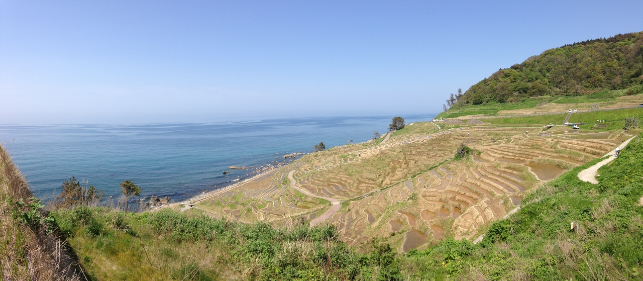輪島の朝市に行った帰りに車で立ち寄りました。背景に日本海が広がる棚田の風景がとても美しく素晴らしい眺めでした。天気が良かったので、青い空に青い海、緑の棚田がこれ以上なく美しい日本の風景のように思いました。隣接している駐車場があり、道の駅もあります。