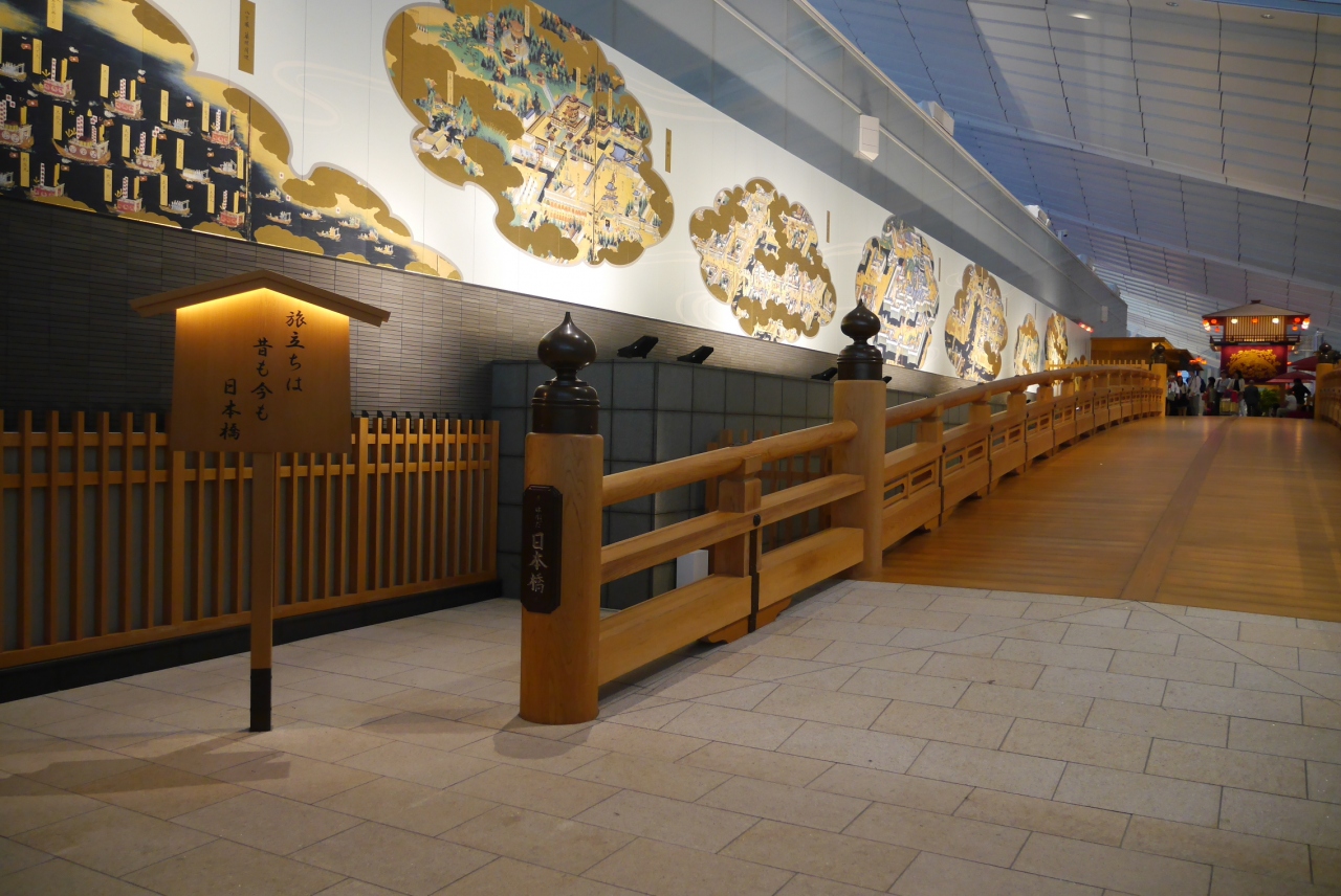 羽田空港国際線ターニナル4Fにあります。「旅立ちは今も昔も日本橋」の表札が掲げられ、国際線出発の際はここに来て記念撮影をしてしまいます。