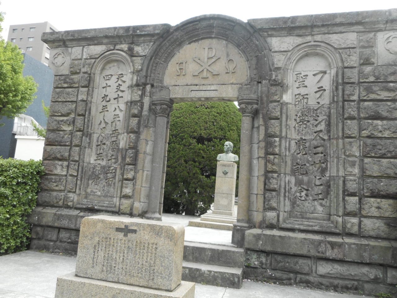 鹿児島市内の観光の際にザビエル公園を訪問したのですが、その公園の一角にある石の壁がこの記念碑です。フランスの神父がザビエルを記念して建てた教会跡だそうで、第2次世界大戦で燃えてしまった時に残った壁だそうです。ちょっと珍しい展示ですし、公園もきれいに整備されているので、見る価値はあり。壁の奥にはザビエルの像もありましたよ。