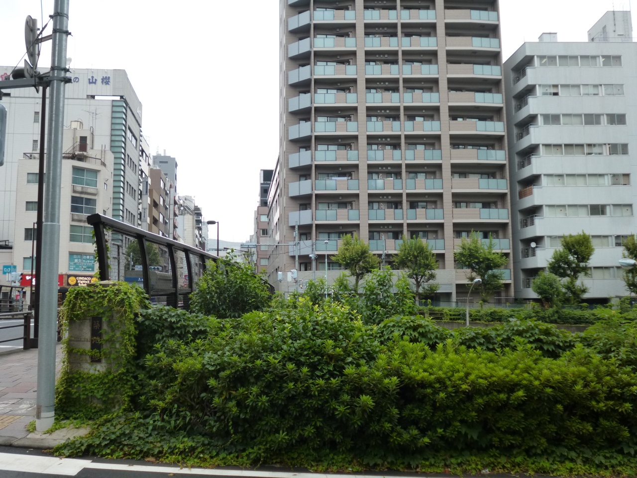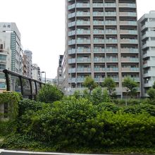 橋の下は、川でなく車の走る首都高です。首都高をまたぐ多くの橋の一つです。築地川が流れていた頃の風景がどんなだったか想像するのは、難しいですが、これが、現在の都心ならではの風景なのかもしれないと思いながら散策するのも面白いです。