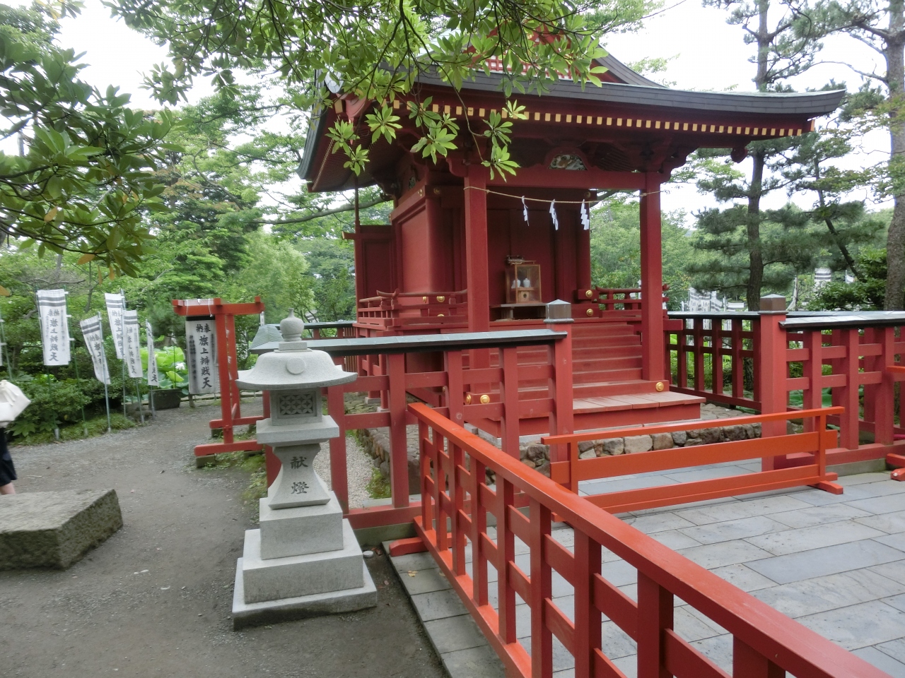縁起のいい神社にあやかろうと、商売繁盛など人生の成功を願う旗がたくさん奉納され、じっくりと読むと面白い。