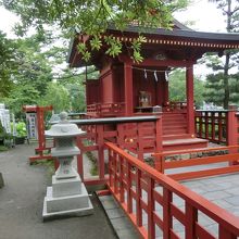 三の鳥居から境内に入り、右手、源氏池の中の小さな島にある。