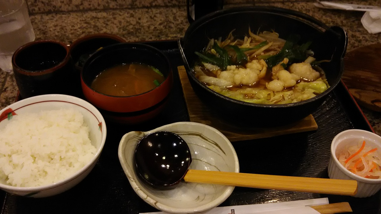 ファミレス風のカツ屋さんですが、メニューには、うどんやてんぷらなどもありました。今回は体調的にカツは避け、モツ鍋定食をオーダーしましたが、量は普通で、味は美味しかったです。