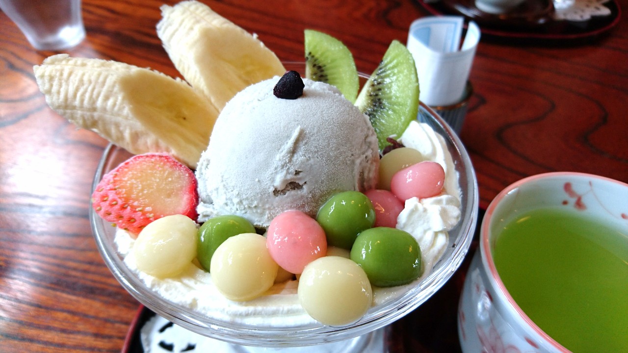 カラフルでかわいい白玉が柔らかく、胡麻アイスと合っていておいしかったです。