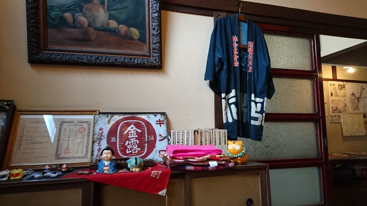 座席の周りには、昔なつかしの置物やら雛人形、ミニチュア着物などが置かれていて、まるで大正時代にタイムスリップした感覚になりました。