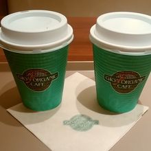 オーガニックコーヒーほか各種ドリンク類とサンドイッチや菓子パン、スープなどが揃っています。