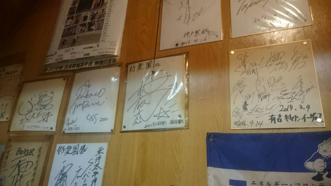 壁一面に掲げられた色紙もその人気ぶりを物語っています。