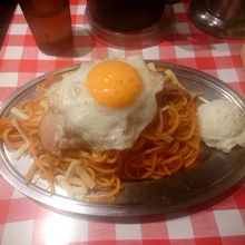 ナポリタン全部のせ、大盛りにてオーダーしました。店員の方に総重量は1キロあるといわれました。店内はいろんなポスターが張ってあり、面白かったです。机上にはタバスコや、ソースや粉チーズなどがあり、最後までおいしくいただけました。