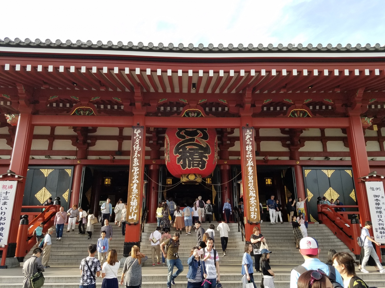 浅草の中心、浅草寺の本堂はいつも国内外の観光客、参拝者で賑わっています。雷門から続く活気のある仲見世通りを抜け小舟町の提灯のかかる大きな門をくぐると、存在感ある本堂が正面に現れます。現在の建物は再建された鉄筋コンクリート制ですが急勾配の屋根は昔の姿を忠実に再現しているとのことです。