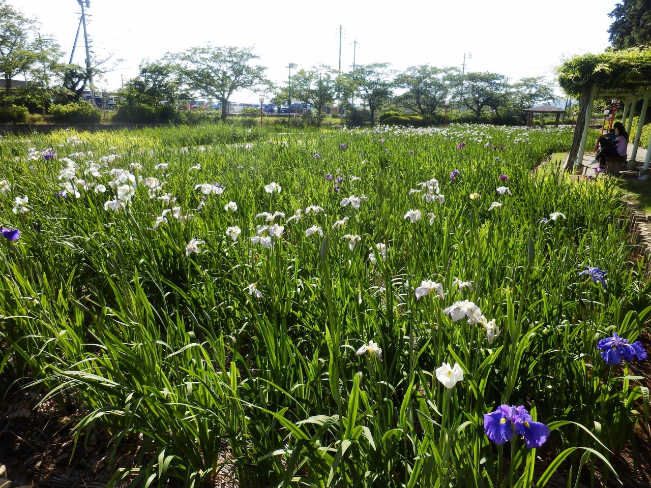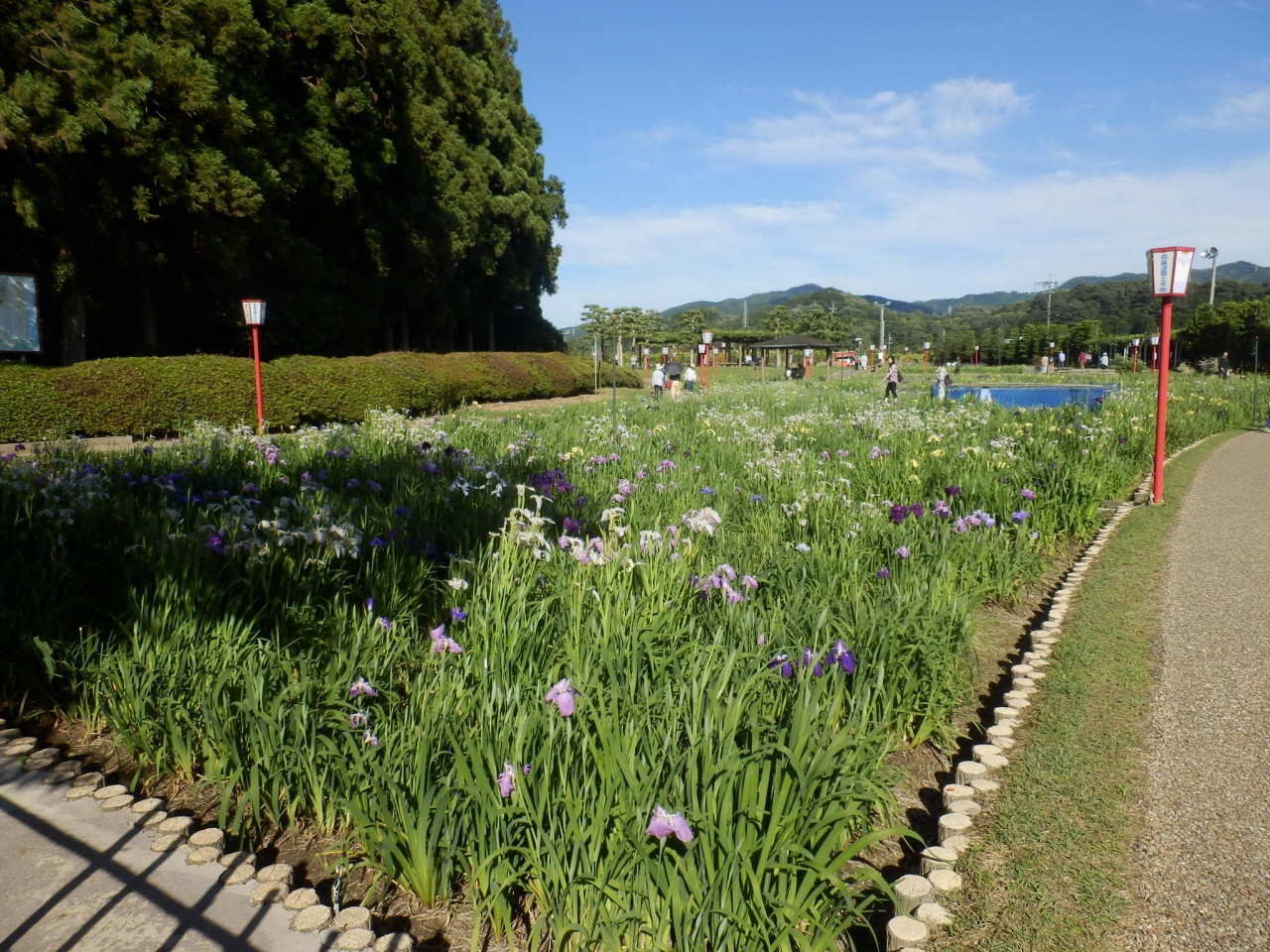 賀茂神社の入口部分に広がるしょうぶ園です。毎年5月後半から6月にかけて、花しょうぶまつりが開催されます。まつりの期間中には臨時駐車場も設けられ、屋台も立ち並んでいました。