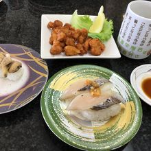 広島県で展開している回転寿司です。店内は広く、座席数がかなり多い。休日のお昼でも10分くらい待てばすぐ食べれました。108円からと、お手頃価格でした。さんま、イカ、鉄火巻き、サーモンの炙りなど10皿食べました。