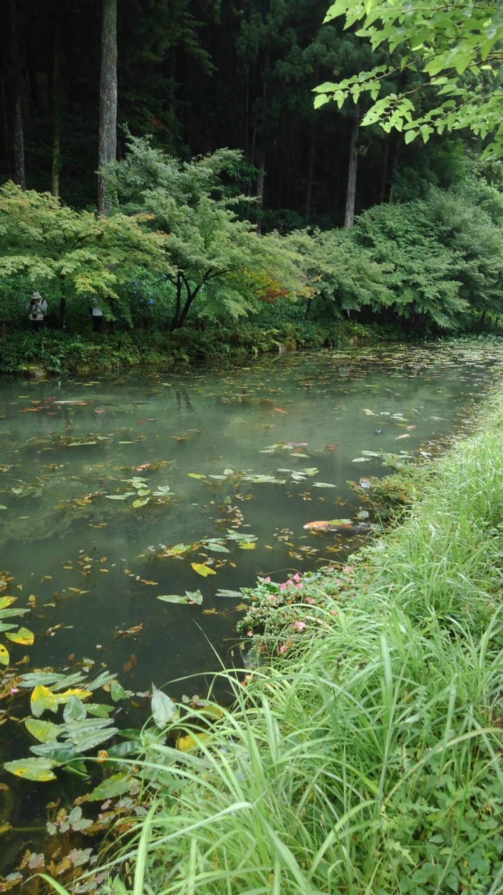 話題の?モネの池へ行ってきました!!8時に到着~ラッキー駐車場も空いてました。雨が降って増水しちゃったかな~お空も曇りでなんとなくモネ(^^;ハートの鯉ちゃんを探せず。皆さん探してますね~。のんびり探せたら見つかるかも。