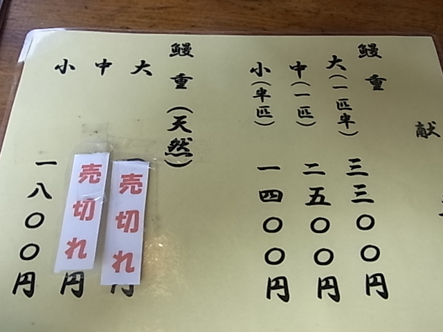 昼少しすぎに到着すると、駐車場で15分程待機しました。注文時には天然ウナギのメニューに欠品も出ていました。