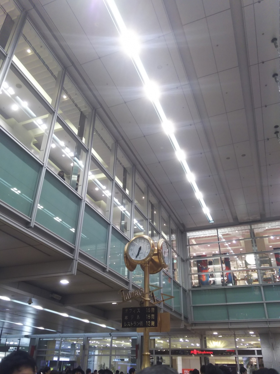 名古屋駅桜通口にある金時計の前で待ち合わせしました。土曜日の夜ということもあり、周囲には同じように待ち合わせの人、人、人。お互い到着しててもなかなか気付かない、見つけられない、逆に出会えない状況に陥りました。待ち合わせの場合はもっと具体的に場所指定した方が良いでしょう。