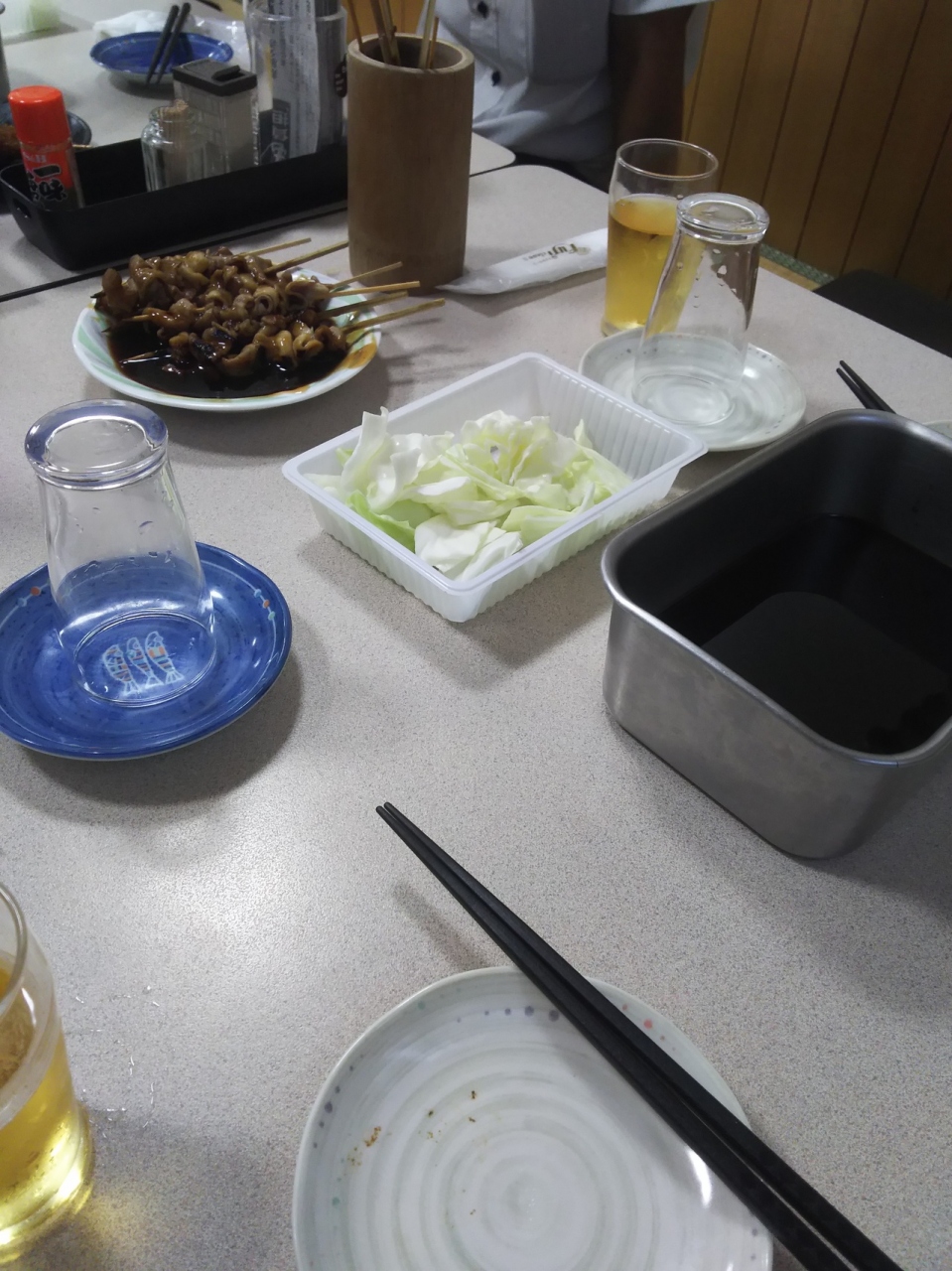 名古屋駅桜通口から歩いて15分くらいのところにある八幡屋に串カツ食べに行ってきました。店内はサラリーマンで満員です。テーブルには二度付け禁止のソースが置いてありました。いろいろ飲み食いして二時間居て二千円でした。安~‼もっと駅から近かくて、もうちょっと店が綺麗だったらまた行きたいのになー。