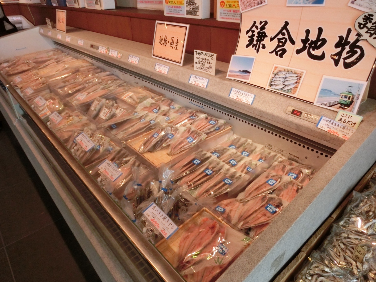 小町通りの一番先っぽ、八幡宮へと曲がる角にある干物屋。