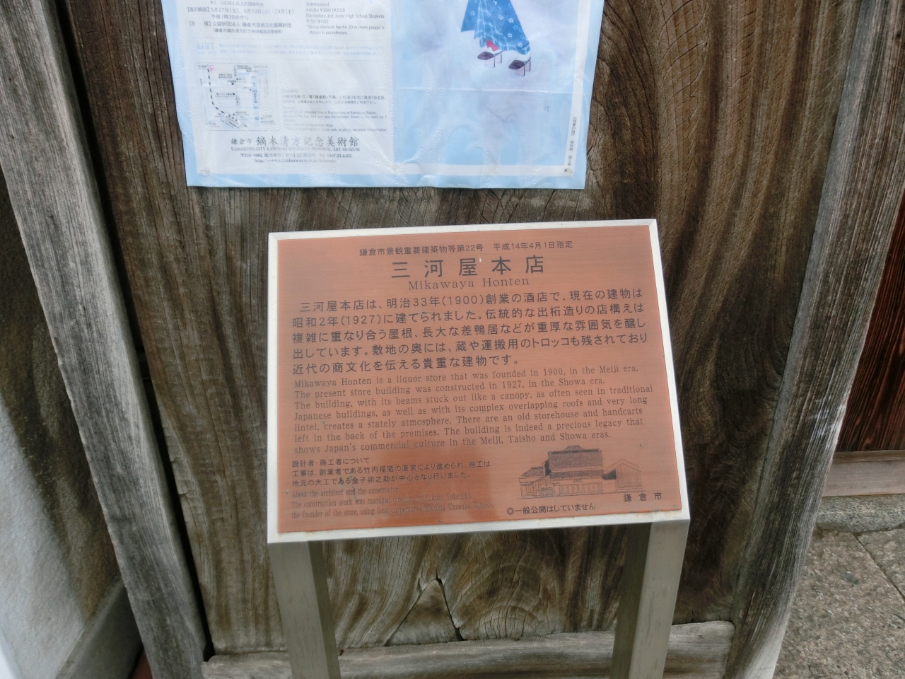 売っている酒はさておき、新しい建物が多い若宮大路沿いの商店の中で、ひときわ目立つのが、古びた木造建築。