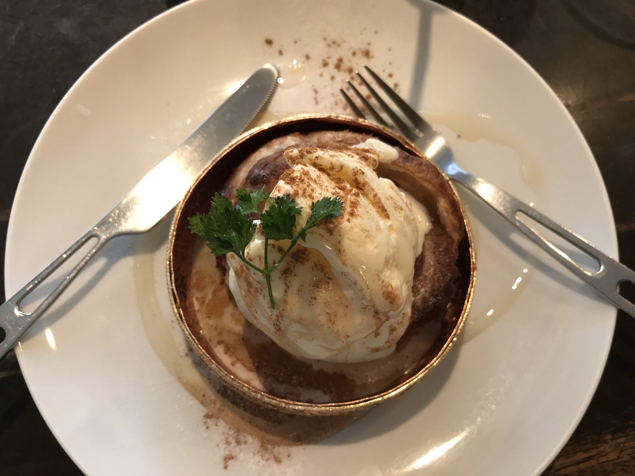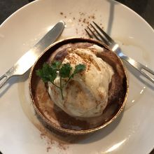 焼きたてあつあつのアップルパイの上に大きなバニラアイスクリームがのって出てきます。
