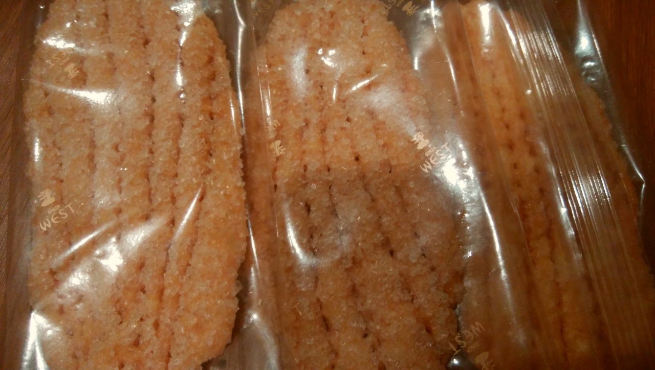 バターと小麦粉で256層に折りたたみ、葉のかたちにつくられたパイで、ウエストの代表作です。上にかなりのザラメのお砂糖が振りかけてあり、ちょっと甘いです。パルミエのほうがリーフパイと同じバターを使ったパイ生地にコーヒーパウダーを織り込んで焼き上げたハートの形の焼き菓子ですが、こちらのほうは一面にお砂糖がかかっていなくて、あっさりした感じで、よりパイのおいしさが楽しめます。